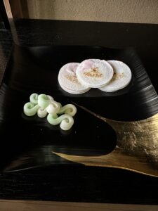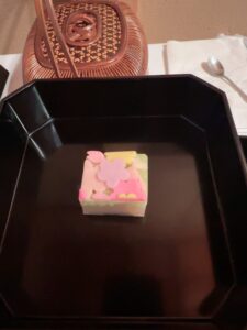 お干菓子は「春の岸辺」行松旭松堂製