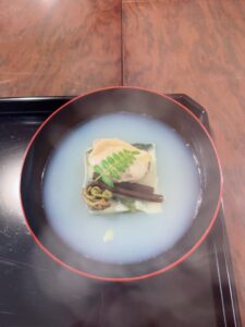 煮物椀は、蛤、若布真薯、わらびに木芽