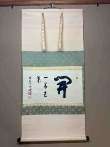 お軸は「一華開五葉(いっかごようをひらく)」玄機和尚筆