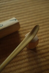 仙榮庵の竹から削った茶杓が完成 2025.09.30 去年12月に伐採した仙榮庵の竹。 陰干しし、油抜きした竹を使って、今回茶杓と茶杓筒が完成いたしました。 仙榮庵での茶杓作り体験を担当して下さっている方が作ってくださいました。 御銘「月の雫」 節は切り止めの近くに。繊細で素敵な茶杓です。 庭の竹が、このような姿に変身するとは…! 竹の可能性に改めて驚かされました。 美しいお茶杓を作ってくださり、ありがとうございました。 Post Share この記事のタイトルとURLをコピーする