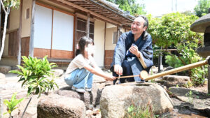 みんなでつくばいに移動です。1人1人手を清めて、いざお茶室へ!