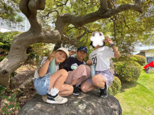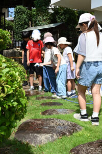 待っている間は、お弁当を食べたり、敷地内でスタンプラリーをしたり、庭で思いっきり遊んだり。