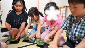 学童保育の夏の特別プログラムとして、今回、茶道体験が実施されました。